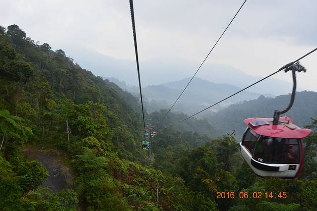 去云顶的车要到中央车站(KL SENTRAL)才有,所以我们一早就去中央车站(KL SENTRAL)买票,大概是一个小时的车程,票价具体忘记多少了(五十几RM来回还加单程缆车,单程缆车是6RM),上云顶时缆车要坐20多分钟,真有那种从地底到云端的感觉,越往上雾越来越大上面的温度也比较底,亲们记得多带一件衣服。