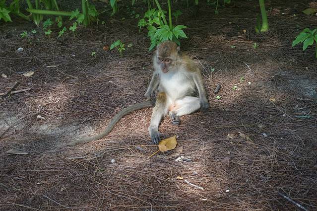 这里的猴子真的很恐怖,所以有吃的一定要收起来,我在荡秋千的时候把包挂旁边的树枝上,一会没留神就有4、5只猴子去翻我的包,还把我的水、防晒霜咬坏了,我想把包拿回来,几只猴子龇牙咧嘴对着我,吓死了怕它们冲过来咬我,我们对峙了十几分钟都没有人来帮忙,旁边一群吃瓜群众在看,后来有两个外国的帅锅可能看不下去了,过来帮我们赶走…………此翻经历以后,导致我只要上岛就有心里阴影,生怕猴子突然冲出来