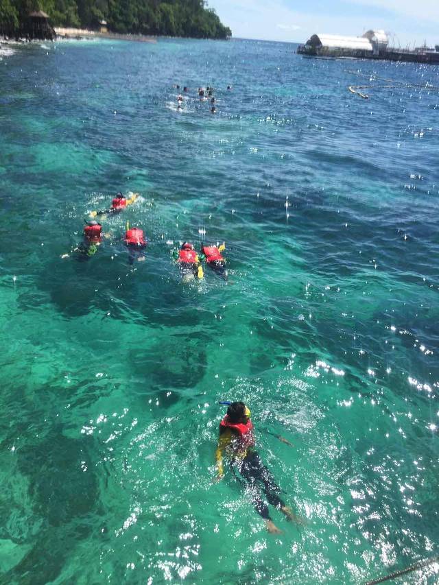 这里是一个湖,人下去后会自己浮起来,但是我只能坐在岸看(很不开心)……以下来说说浮潜,虽然我没有去,但是……去浮潜的路程比较远,坐车要一个多小时,有车直接到酒店接送(好遗憾没有去啊!)朋友说很好玩,不过要注意防晒,因为她们仨从浮潜回来整个人都晒伤了红红的,而且很痛。