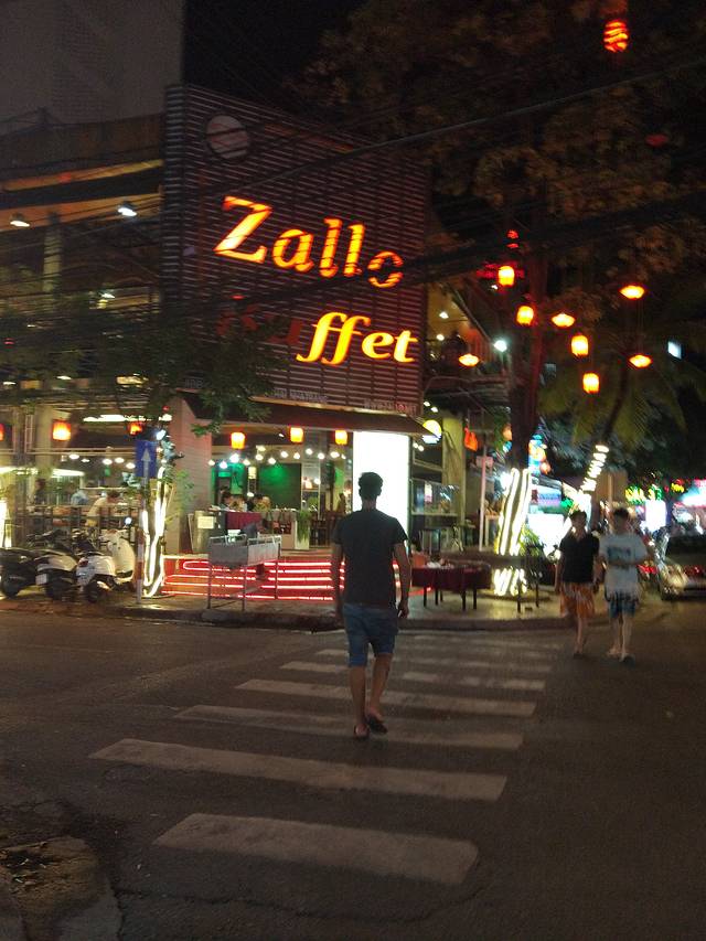 下午参观完以后回酒店休息 芽庄的行程都不赶,基本上下午4.5点就能结束行程。因为我们报的是半自由行,所以都不含晚餐。晚餐呢 我们就自己吃 可以问地接导游在哪里吃饭 ,因为我们是第一次去比较好奇,所以决定自己去市中心看看 市中心全是餐饮店,我们最后选择了一家自助大排档吃饭,一个是品种多,价位比较合理,22万盾一个人 折合人民币66元每人 主要是里面的选择余地大,海鲜也比较多,可以选择自己喜欢的。吃完饭我们决定走回去 结果走了将近40分钟才到酒店,真是暴走的模式
