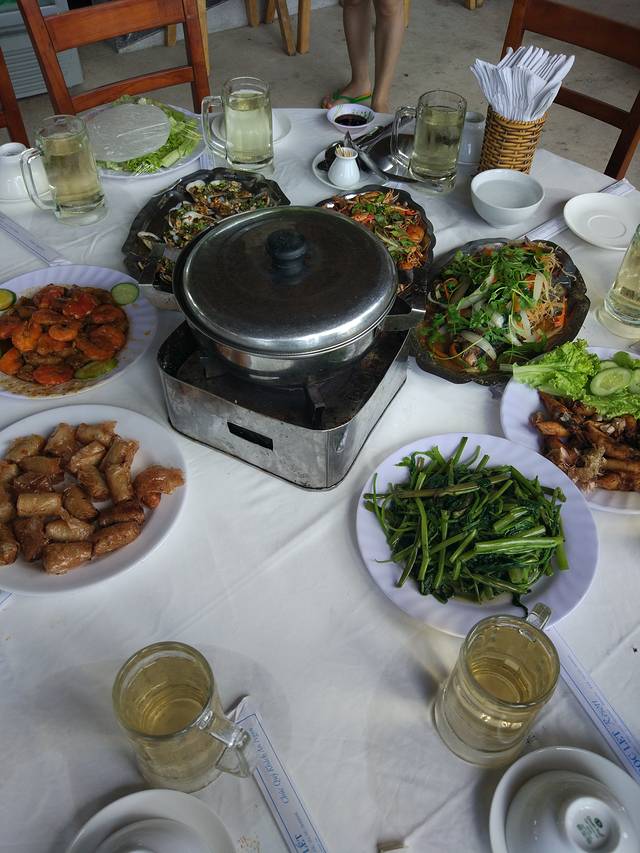 下午自由活动 我们回酒店休息 大概17点左右我们出发去吃饭,这一次因为时间早我们选择顺着海湾去往市中心吃饭,顺着海边一路上踩着沙滩 吹着海风还是很惬意的,海边越南本地人游泳和散步打排球的人也多。可能是因为顺着海边走舒服 感觉不一会就到市中心了,今晚还是转了大半天 换了一家自助吃 因为觉得单点菜不划算,价位太高。还是自助比较划算。这次到的店贝类品种很全,不仅有烧烤,还有火锅,今晚我们真是吃到撑。(自助酒水都是不含的)晚上用完餐以后还是打车回酒店。(其实也有别的餐,但是价位都不便宜 路边的小吃害怕不卫生也就放弃了)