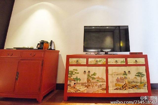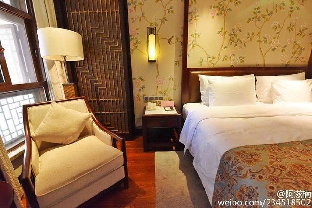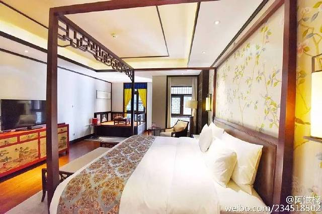 阔气的木质屋顶、灰墙黛瓦。房间内仿古、木制设计打造,雅致大气,素雅清淡,韵味无穷。细细看去,房间内的陈设全部按照五星级酒店标准,比如胶囊咖啡机、丰富的果盘、床头多媒体音响……卫浴间也是整洁宽敞,皆是我的爱。
