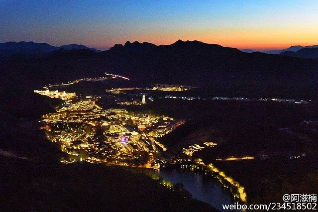 古北水镇的夜美得让我有些意外,傍晚时分乘坐缆车到司马台长城顶,看日落观水镇起灯全貌,万家灯火迎着落日余晖,尽在这中国唯一的夜长城。