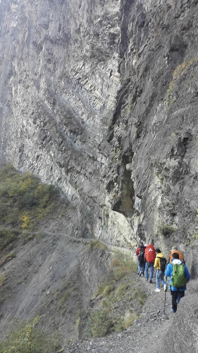 这个角度,去过的大神应该知道是哪儿吧,很多第一次去的朋友都喜欢在这拍一张到此一游标准照,这儿还得吐槽一点事儿,从冷碛镇到鱼进沟的路上刚到鱼进沟中桥,当地村民就把路拦起来说这路刚修的怕压坏不让过,只能下来走路到前面一节去另外坐面包车,说白了就是要多花钱坐里面的面包车,等我们刚上里面的车,外面的路就通了,看见很多车通过,这摆明了坑钱嘛。
