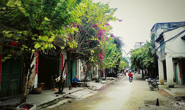 安静的老街、古旧的门扉、斑驳的墙壁、门前的大树,屋檐下的三角梅……历经岁月的风尘,镌刻着时代的变迁,沧桑古朴、恬淡优雅。