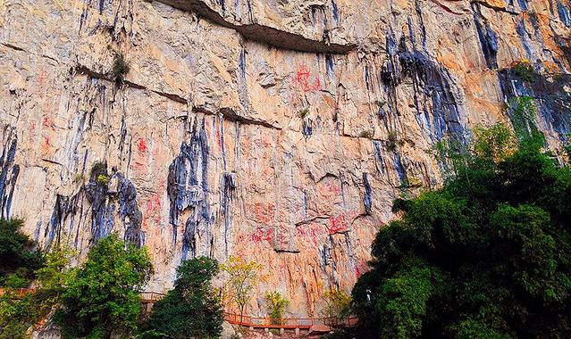 山壁近于垂直,甚至还向河面倾斜,骆越人究竟是怎么上去作画的?