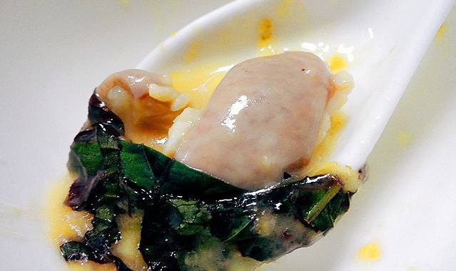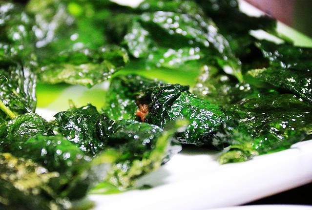 除了酸粥,最有特色的还有假蒌包肉。假蒌叶的样子和胡椒叶子有点类似,味道吃起来象紫苏,宁明人很喜欢用来包肉或是炒田螺。和牛肉搭配在一起,巧妙地中和了肉的油腻,入口齿颊留香。