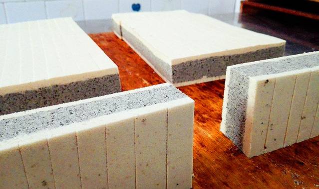 沙糕是将糯米粉炒熟,加入花生油、白砂糖及黑芝麻,用擀面杖细细研磨混合。然后在木格中铺一层糯米粉,加一层“馅料”,再盖一层糯米粉,压制成宽扁型,最后用格刀将其分割成均匀小块。沙糕味道香浓,入口即化,还可以健脾乌发,是女孩子的最爱。