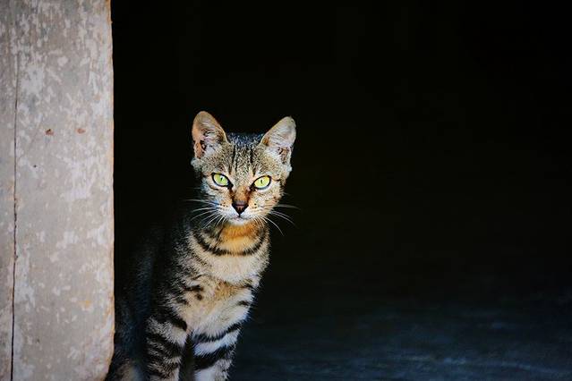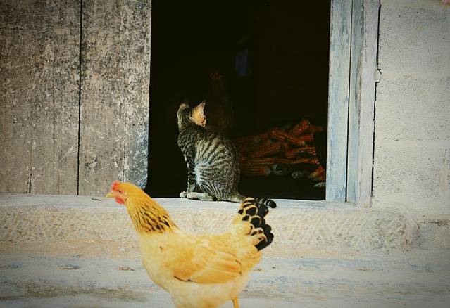 小村依山靠水,黄砖黛瓦,荷塘竹篱,鸡犬相闻。还有好奇的喵星人,从门后悄悄地打量我们这些外乡来客……