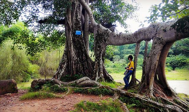 听同行的本地朋友说,原本这“独木成林”的景色还要壮观,可惜的是前两年其中最大的一株因雷击而枯萎了,我们只能在脑海中怀想当初“树荫遮天蔽日、绵延20余亩”的震撼景象了。