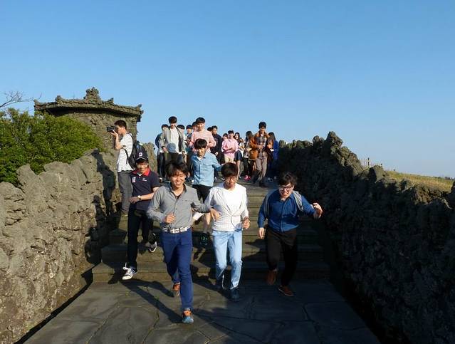 有很多韩国的中学生来山君不离游览