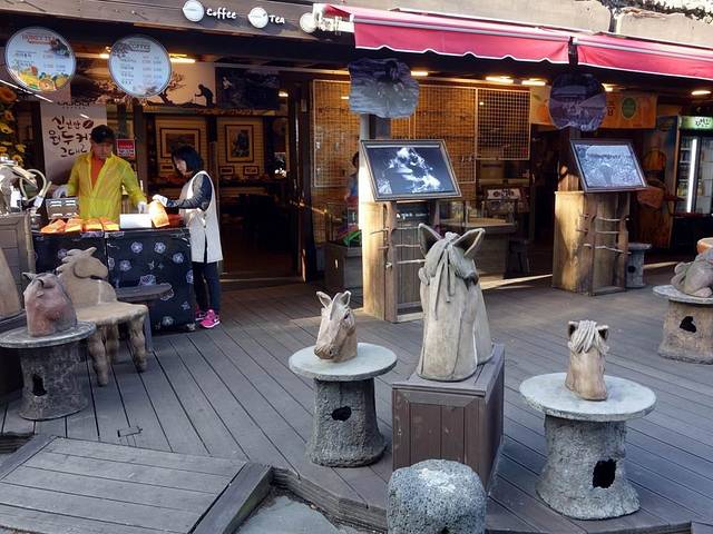 当天傍晚,我们还游览了济州岛的地下商街。所谓地下商街就是经过改建的地下通道,里面有服装、鞋帽、饰品、眼镜、钟表、箱包等商店进驻。对这种地方不感兴趣,便在地下商街的出口等候,并随手拍了几张照片。