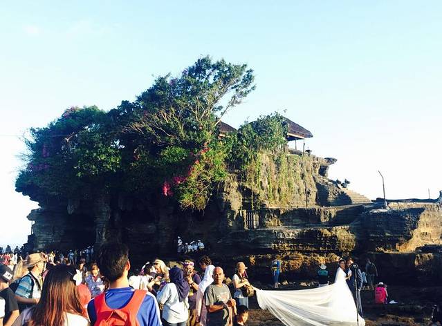 去海神庙玩的人还是挺多的,这个海神庙很像国内的旅游景点,景区外面是各种的商铺,卖旅游纪念品,鸡蛋花头饰,还有民族服饰。也有卖长裙的哦,没带长裙的美眉可以买一件,但记得要还价哦,不然会被宰的很惨。