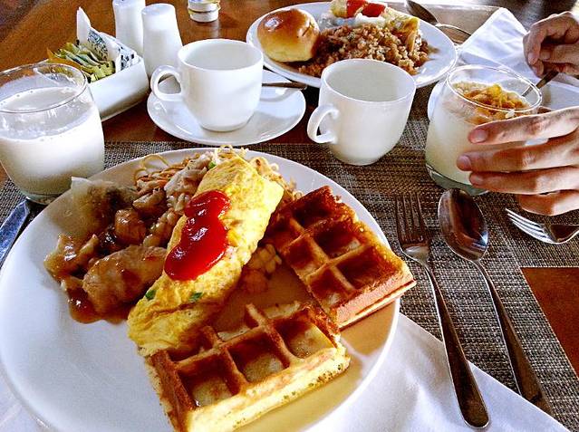 美美的换好衣服,打扮妥当,我拖着大白先生去大厅吃了早餐。早餐很丰盛,也有我喜欢吃的华夫饼~