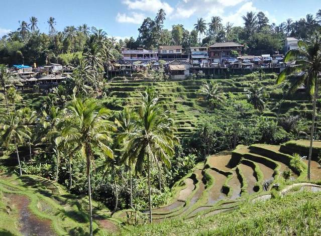 巴厘岛的梯田风景主要集中在德格拉郎一带,虽然没有咱们国家婺源梯田那样的壮观大气,但是梯田夹杂着些许椰子树,映衬着远处的火山,也是另一种风景。