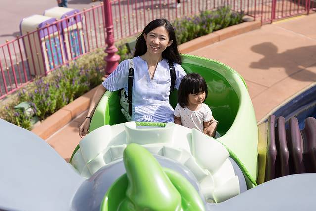 进入迪士尼的时候,人还不是很多,我们先去了未来世界,玩了巴斯光年,可可开始还有点怕,不过这个和她平时坐的小火车有相似的地方,很快就适应了。回到家以后还不停的学巴斯光年打怪兽,看来是留下了深刻的印象啊。