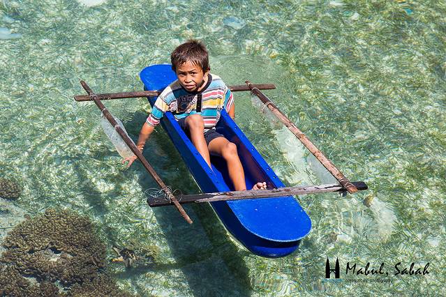 临走前,随手拍了拍当地的巴瑶族小朋友,这次选择马布岛,本想体验一下马布岛的人文风情,可惜潜水上瘾加状况不断,因此没时间拍拍人文了。当地的巴瑶人没有电、没有淡水,但是他们也有自己的欢乐。巴瑶人天生与水为邻,以水为生,近百年来,一直在海上生活,从未涉足大陆,被称为海上吉普赛人。现在,菲律宾、马来西亚的巴瑶人有部分已经进入陆地,过上了和我们普通人相同的生活,而马布岛这个与世隔绝的地方,仍然保留着巴瑶人的传统,这里居住的2000度巴瑶人依然依靠渔猎为生,过着并不富足的生活。巴瑶人传统捕鱼小船叫“lepa-lepa”,船体狭窄、船头高耸,一般长5米、宽1.5米。