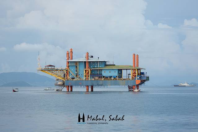 大家的热情还没有消散,还有45分钟的快艇等着我们,想着快到此行的主菜了,大家都是充满期待,旅途的倦容一扫而光。当我们发现一个钻井平台的时候,马布岛也就映入了我们眼帘。