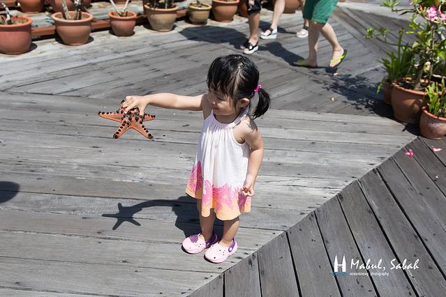说了这么多,总之我们的马布还是相对安全的。潜不了水,只能陪可可玩耍了。今天最让可可兴奋的事,是当地的巴瑶人抓了一只海星,我们给了些吃的,他们就把海星扔给我们。可可之前只是看,这下可以近距离接触了。但是我不能确定这种海星是否有毒,也不敢让她动。