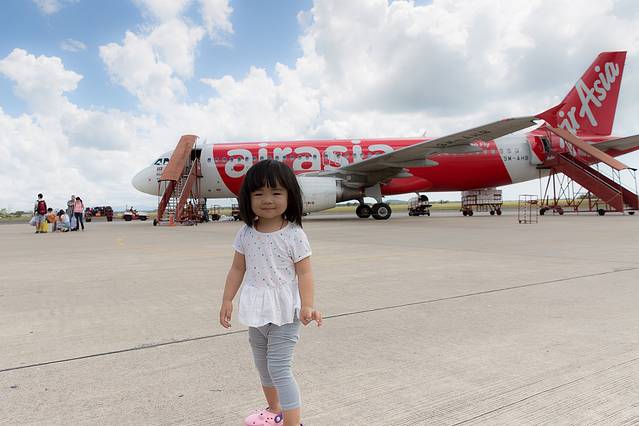 斗湖的天气真好,天高云淡,让人心旷神怡。可可第一次这么走下飞机,怎能不与飞机合影留念呢。更何况亚航的大红色还是蛮上相的嘛。