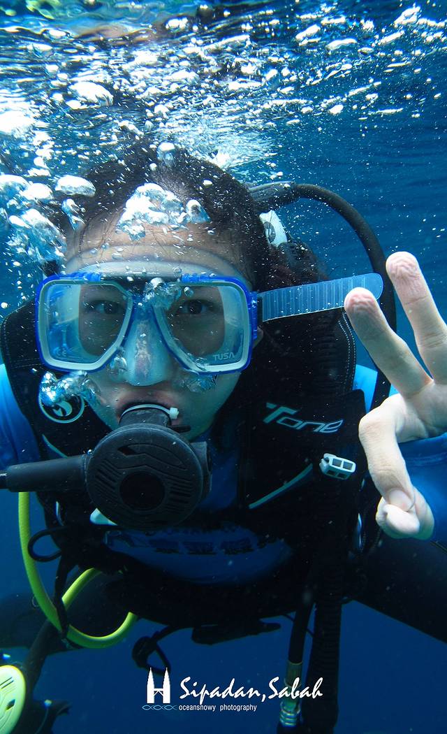 随后便是下水考一考我们掌握的情况,同时体验一下下潜的感觉。只考了我们两个内容,一个是面镜排水,一个是呼吸器脱落后重新呼吸。这当然都难不倒我们。看我们掌握的不错,Alan提出了一个令我们惊喜的意见,那就是第四天带我们去诗巴丹体验深潜,如果不能深潜的,就去浮潜。我俩大喜过望,本想着怎么去申请去诗巴丹呢,这真是得来全不费工夫。