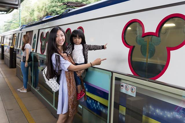 迪士尼的地铁专列很Q,可可从东涌线转乘后,突然看到迪士尼列车驶入,一下兴奋了起来,但是可能由于舟车劳顿,可可的精神头已经明显没有开始的几天足了。
