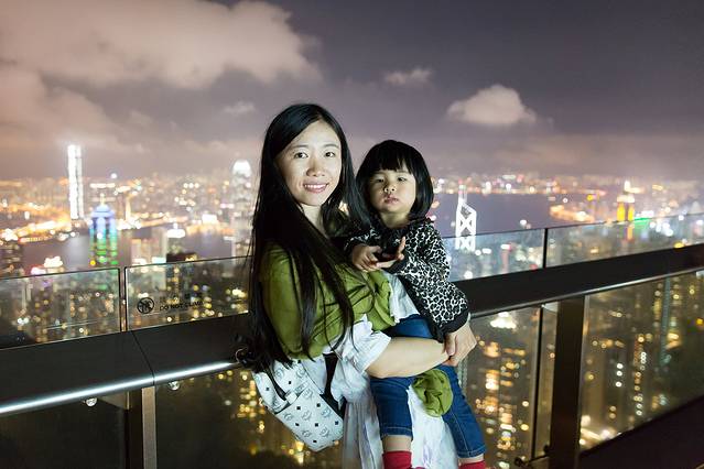 奔赴中环太平山缆车,提前在网上买了票,去了不用排队,人也并不是很多,只等了一波缆车,就上去了。可可对坐小火车体现了浓厚的兴趣,不时地左顾右盼,缆车的坡度太陡了,最陡的地方快45度,不过仅仅一会,就冲出山坡见美景了。要说太平山还确实是观赏香港夜景的最佳位置,再加上天气晴好,真可谓不枉此行。