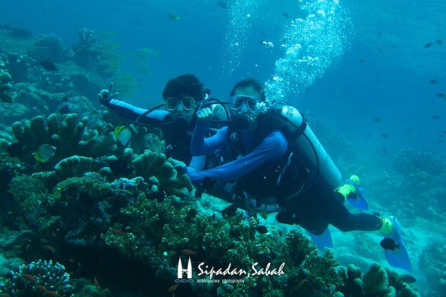 体验深潜是250令吉一次,在周边几个度假村来看是最实惠的,第一次体验是酒店潜水中心的岸潜,第二次可以主动要求出海深潜,我们迫切的要求去诗巴丹深潜,估计人不多的缘故,没费什么周折我们就成功了,也没有多收我们费用。后来我因过敏没去成后,还把名额让给了两个北京年轻人,他们也和我们套路一样,体验了诗巴丹深潜。
