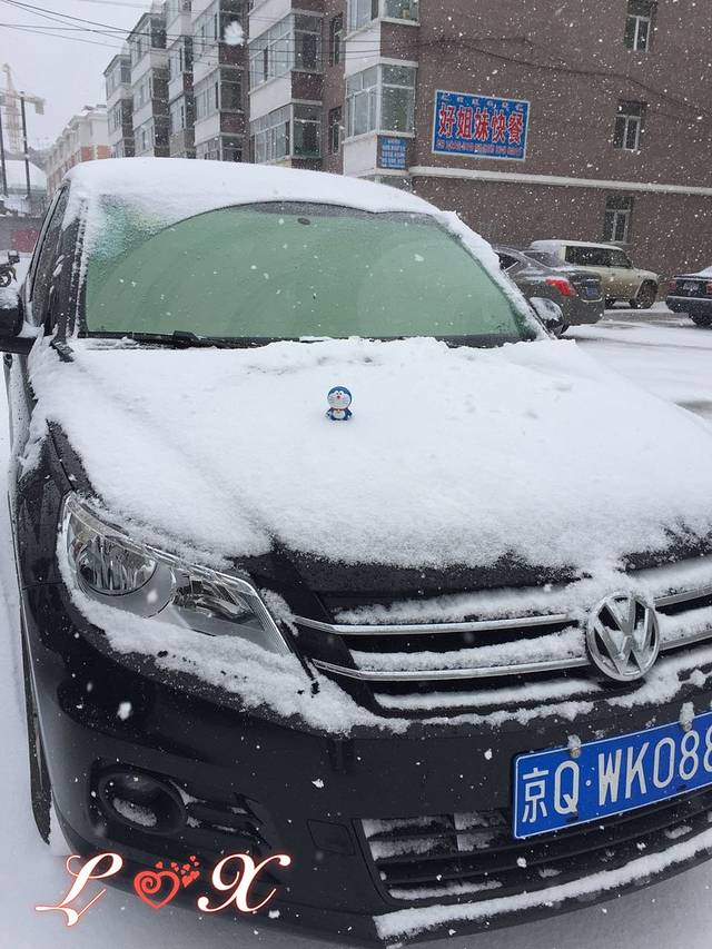 早上起来,我们的车变成了这个样子,好大的雪~热车,除冰,出发!