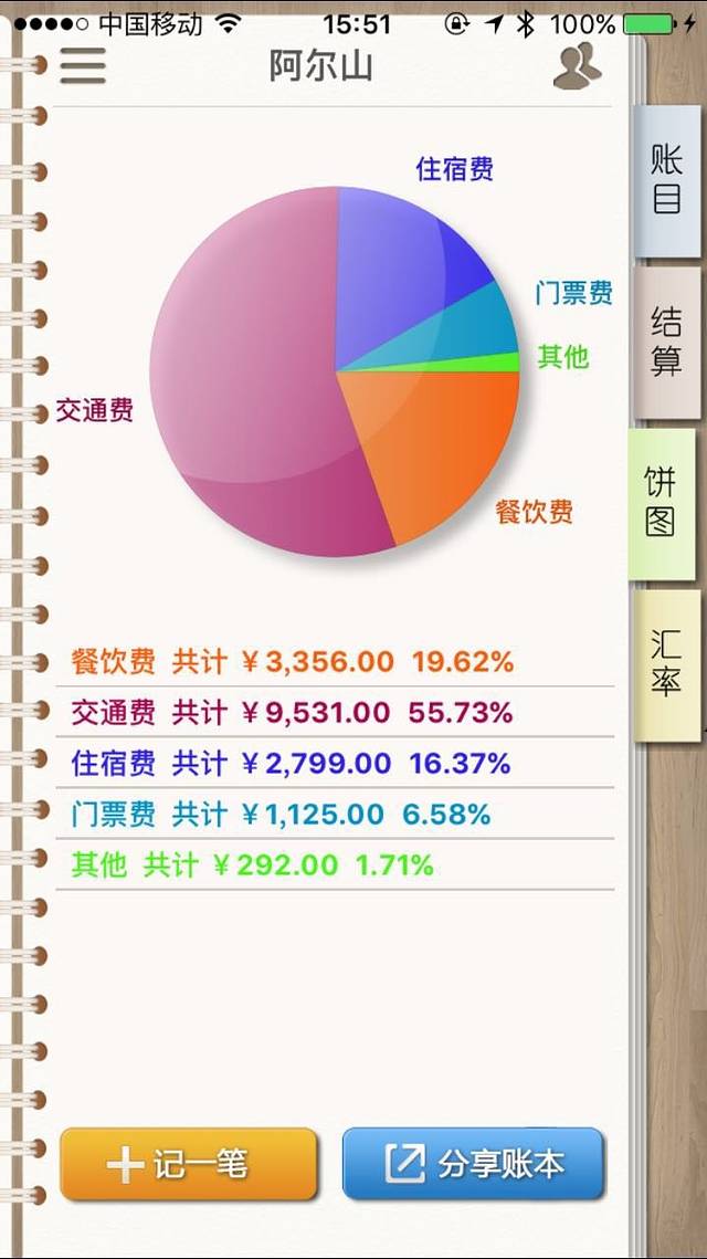 整体花费清单