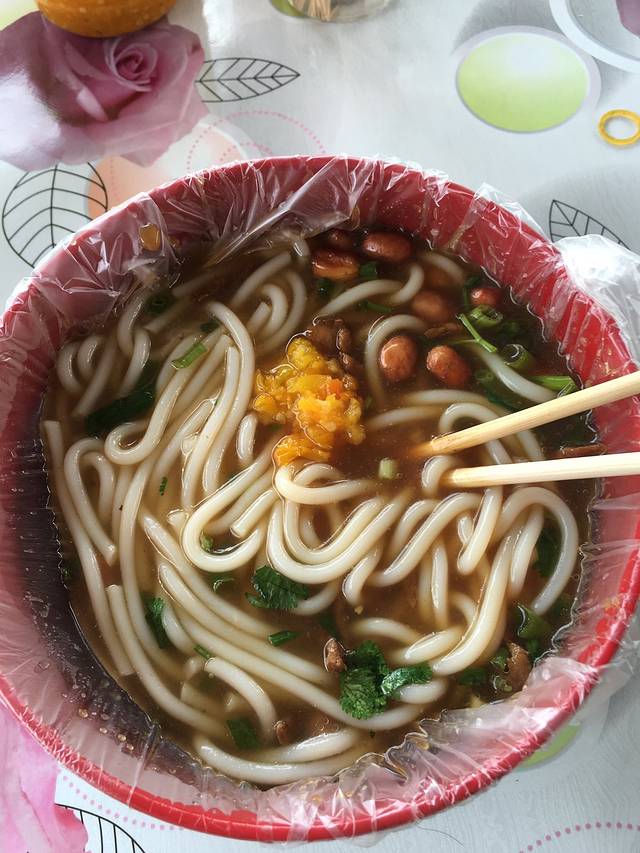 抱罗粉,味道还不错,但是后面吃到别家的才发现,貌似这个不正宗呢。黄色的是本地黄灯笼辣椒,事实证明我是一个重口味。