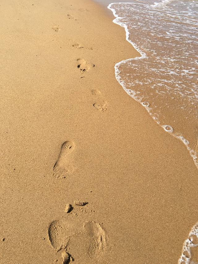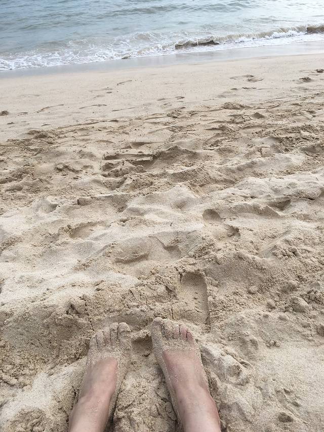 假日沙滩的沙很细,适合光脚走,海风很温柔。