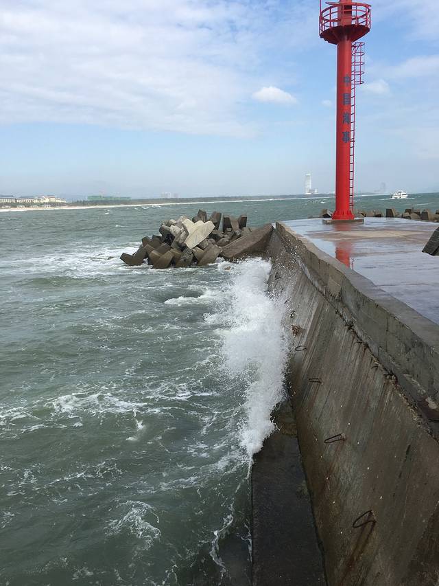 海棠湾后海的景色;白天的浪小了许多。但是依旧打上来了。