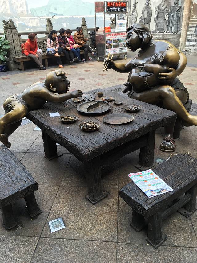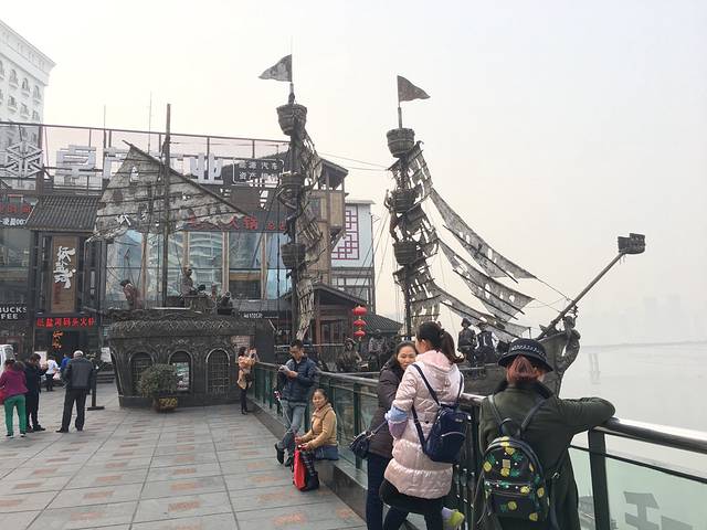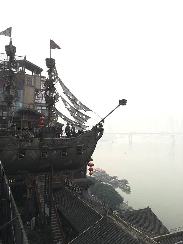 从洪崖洞往下走,原来地面这里已经是十多层了,可以选择走楼梯或者电梯往下行。