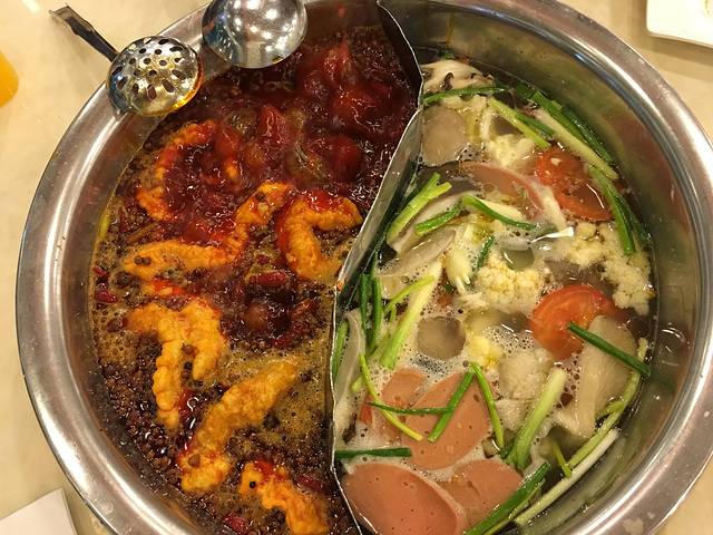 朱氏烂胖子火锅,没有九宫格的锅底,还是点个鸳鸯的吧,酥肉放下锅里,是不是看着就很有食欲呢。