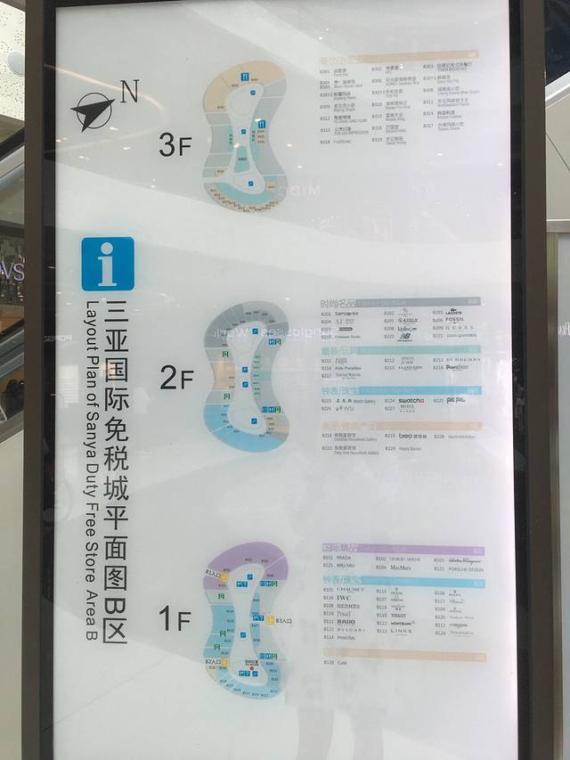 免税店平面图,分为A区、B区。有免费停车场。最后在免税店买了香奈儿5号香水,2016款,50ml,730元。