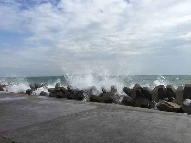 原本想在沙滩边捡些贝壳,由于浪太大了,只能放弃这个想法。