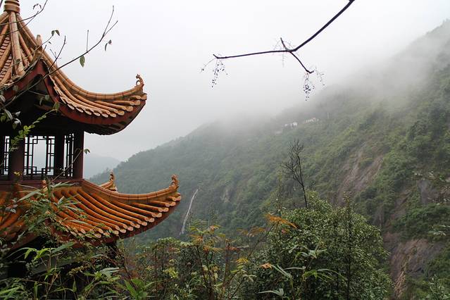 天气阴沉,听到很大的瀑布声,但就是看不清,都被雾遮住了,眼前一片白茫茫,心塞到不行!!好在闺蜜保持乐观,相信后面天气会变好,事实果真如此!【转圈】