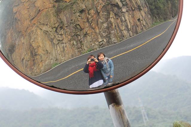 路边的反光镜(后来才发现,这是我们唯一的合照哇)