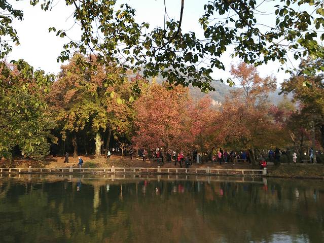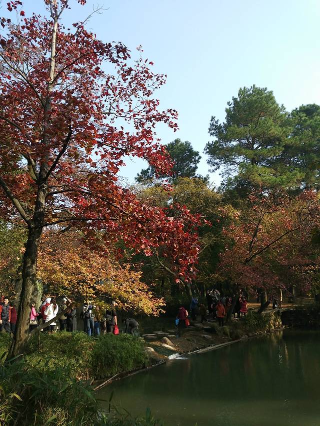 天平山的风景确实很美!山脚下,有好几个大小不一的池塘,分别取名为放生池、睡莲池、白云池、十景塘、荷塘和垂钓塘,这些池塘在红叶、黄叶和绿叶的映衬下,显现出五彩斑斓的色彩,与蓝天交相辉映,分外妖娆。绚丽的自然风光,吸引着每一位游客驻足拍照留影,更召唤着许许多多的摄影爱好者和发烧友扛着“长枪短炮”摆开架势,忙前忙后,此情此景也成为美丽风景之外又一道独特的风景。