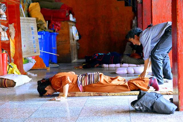 现场老老小小的信仰都,正在历经藏族最至诚礼佛
