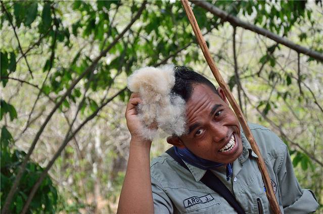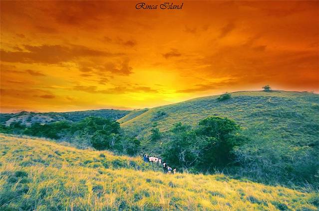 暮色已近,我们当天晚上的最后一站就是去参观瑞卡岛,科莫多龙的家。这一次有八个本地土著保护着我们,他们手持着一支Y字形的木棍,走在我们队伍的前后中,以防有野生动物伤害到我们大家。因为这里是科莫多龙的家,我们现在是侵入了它们的领地。