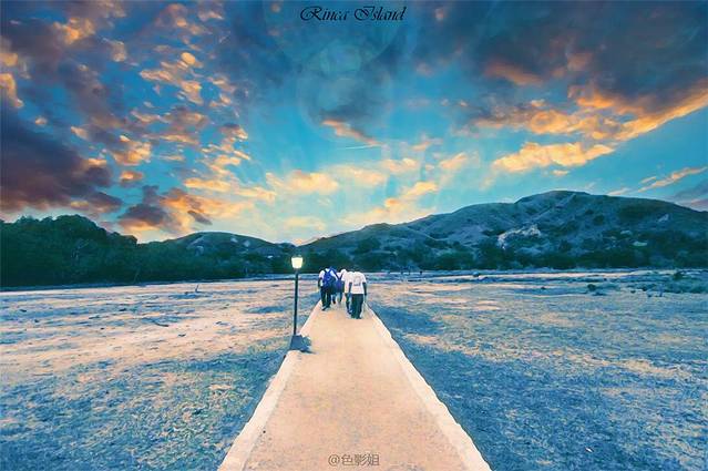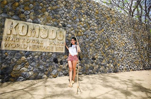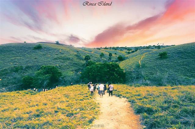 我们跟着导游,爬上高高的山坡,没有那么多宽敞平坦的小路,那都是用脚踩出的小石子路。在出发之前,我们的导游山鸡哥给我叮嘱很多次,让我不要穿高跟鞋,因为我天天蹬着高跟鞋,她好担心我走不稳,不能爬山,所以我最后没有买到运动鞋,于是当天穿了一双酒店的一次性拖鞋,在科莫多岛走了一圈,把那双一次性拖鞋彻底报废后,我还是穿上了一双高跟凉鞋,走进这个rinca岛,虽然有时候有点滑,但是比那个薄薄的一次性拖鞋感觉好多了,但是被雷宝宝看到吓到她了,下坡的时候扶了我一把,她担心我从山上滚下去。其实这事根本就没有发生。