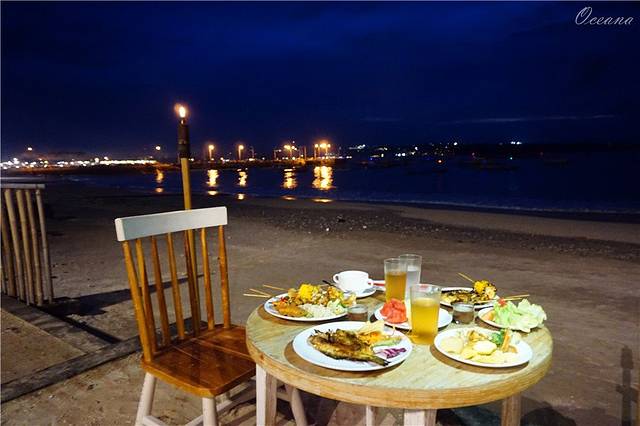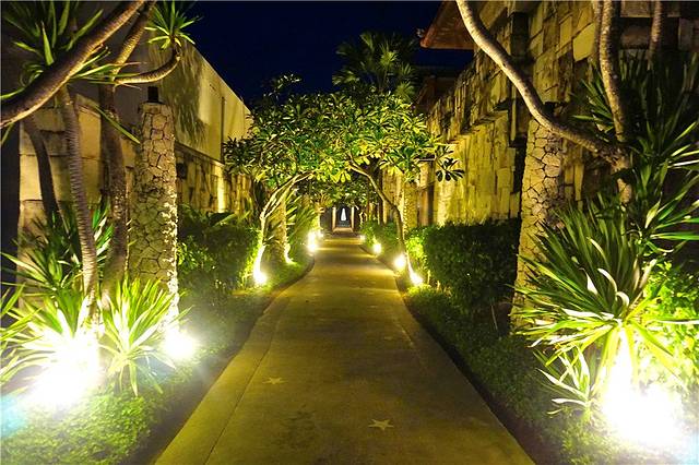 晚上10点钟,我们又去沙滩漫步,路过泳池,传来阵阵欢乐的笑声,明天晚上我还想过去游,在泳池中心的小酒吧里喝一杯;夜晚的灯光洒在沙滩上,把我的影子拉成了圆规,海浪涌上沙滩,海水清清,巴厘岛的夜晚浪漫又惬意