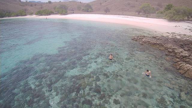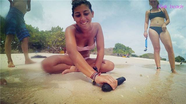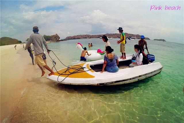 这一刻激动人心吗no,但是是非常的开心,因为粉红沙滩就是我想象中的沙滩一个样,我没有期待它有多pink,你以为是hello kitty吗不是。我们领了浮潜的面罩,听教练在那我们跟我们讲如何使用,我迫不及待的想要到海水里去试。