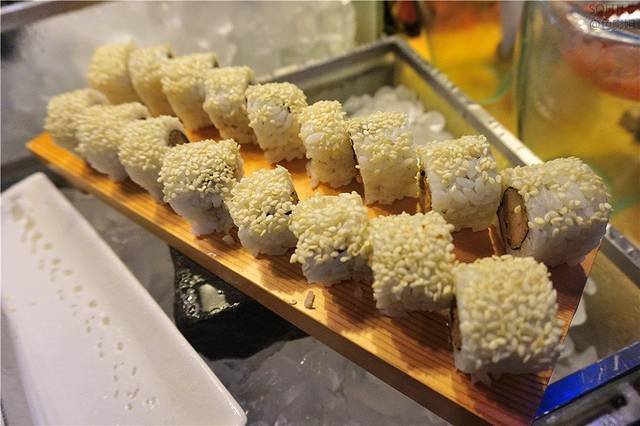 第一份食物是炸春卷配蔬菜沙拉,春卷炸的很脆,很好吃,上面撒了一些甜甜的辣椒酱,蔬菜沙拉里面有番茄、生菜、胡萝卜丝,新鲜爽口。