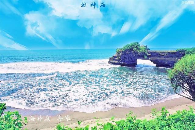 海神庙,第一天我们到达海神庙,这是一个神奇的地方,蓝蓝的天空,白白的浪花,让我们为此沉醉。在35度的气温里面,品尝冰凉的椰子水,礁石与大海,它是一幅美丽的画,永远藏在了我的心里。