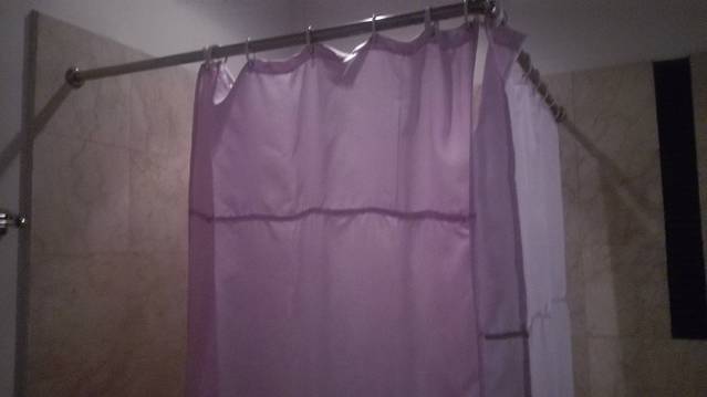 我们的浴室,上面挂了的布帘子挡门。
