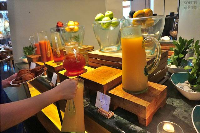 眼睛吃饱后,现在来满足我的胃,在novotel充满阳光的餐厅里,不禁要感叹一下,生活真美好。宽敞的空间,舒适的沙发,新鲜的菜品,精致的点心,看着落地窗外的满眼鲜花,伴着阳光喝下的果汁,甜蜜的味道从口里传到心里。