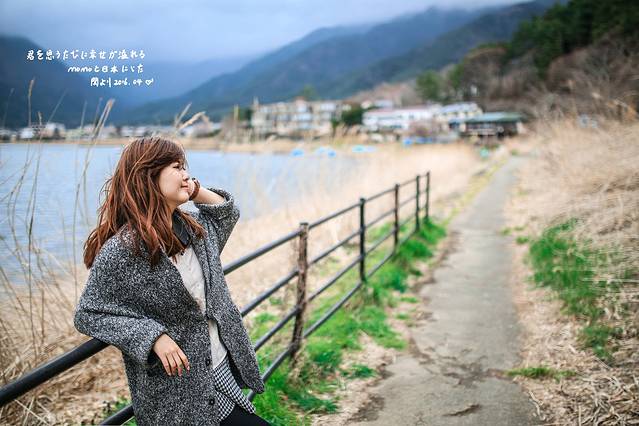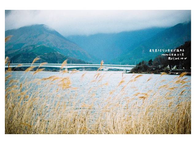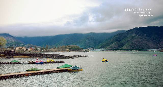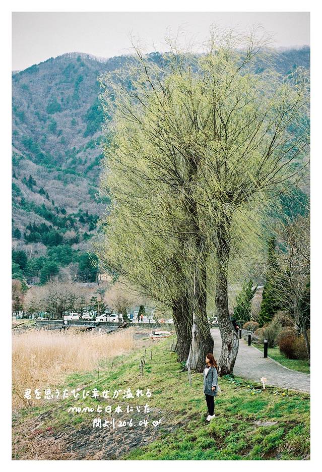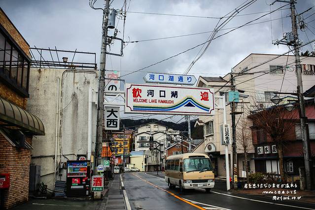 我们下车后准备租自行车绕湖游览,momo不会骑自行车,租车的日本人严肃的说不可以租给我们,无奈我和大宝放弃了租自行车的想法,河口湖的各个景点会有公交站,可以买通票,就可以任意坐公交了,因为天气实在不好,我和大宝想绕湖半圈就往回走。